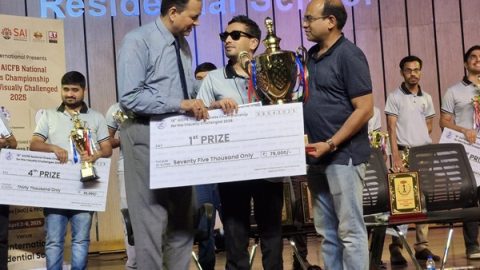 Darpan Inani from Gujarat emerged as the champion at the 18th AICFB National Chess Championship for the Blind, which concluded at the SAI International Residential School in Cuttack. Inani claimed the prestigious title with an impressive score of 7.5/9, securing a crucial victory over Subhendu Patra of Odisha in the final round. His stellar performance earned him a cash prize of Rs. 75,000 and the coveted winner’s trophy.